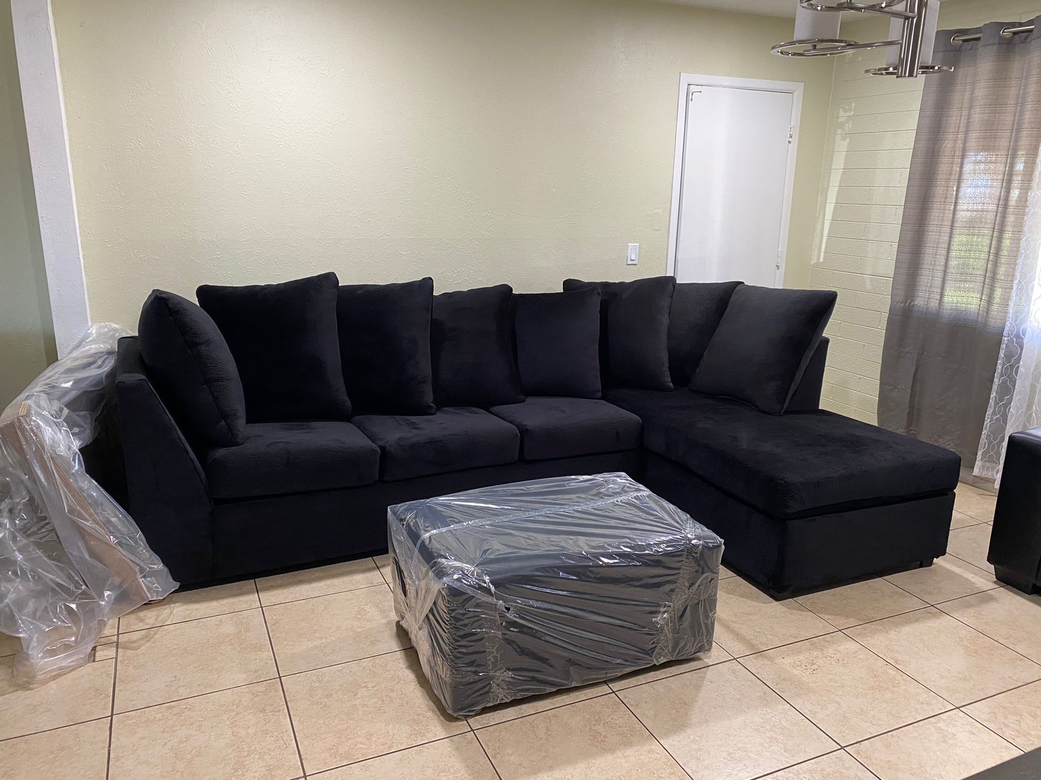 ¡¡¡BIG OFERT 🗣🔊!!! ¡¡¡Black Sectional with really soft fabric !!NEW and Comes with Ottoman !! ‼️IN STOCK‼️ Come pick up or ask for delivery 🚚 ¡¡¡GRAN OFERTA 🗣🔊!!! ¡¡¡Completamente NUEVO!!! Confortable Black Seccional con ottoman incluido
