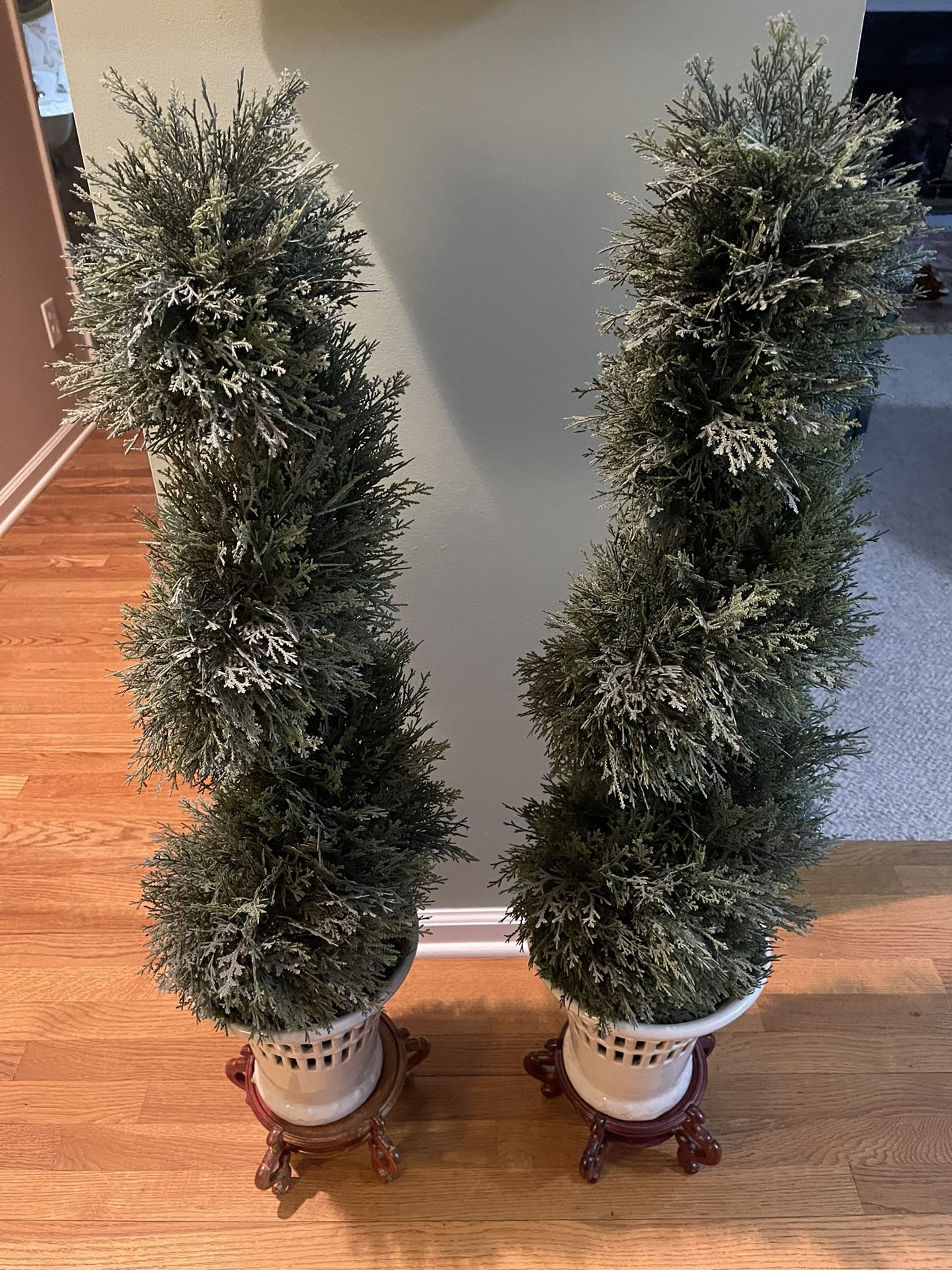 Topiary - Artificial Plant - Ceramic Vase - Wood Pedestal/stand (pair)