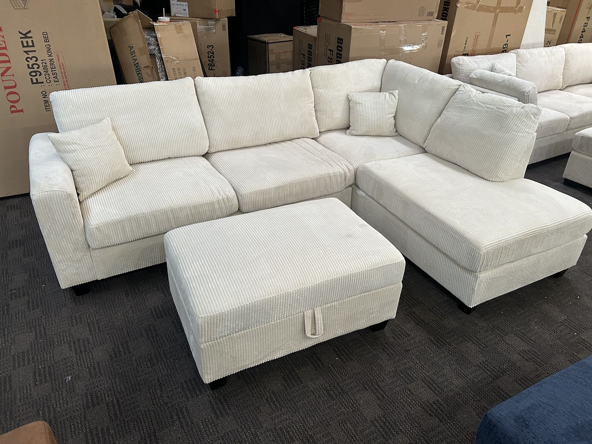 Brand new sectional with FREE ottoman. Available in other colors. 105” x 75” Delivery service available 🚚 Zero down, interest free financing. no credit check! Hablamos español 🇲🇽
