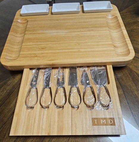 Cheese Board Set with 3 Ramekins Charcuterie Board - Great House Warming Gifts, New Home, Anniversary & Wedding Gifts for couples, Bridal Shower Gifts - 16.5" x 12.5" x 1.4" - 6 charcuterie utensils included ** Local pickup only (Zip 90020) ** All sales are final