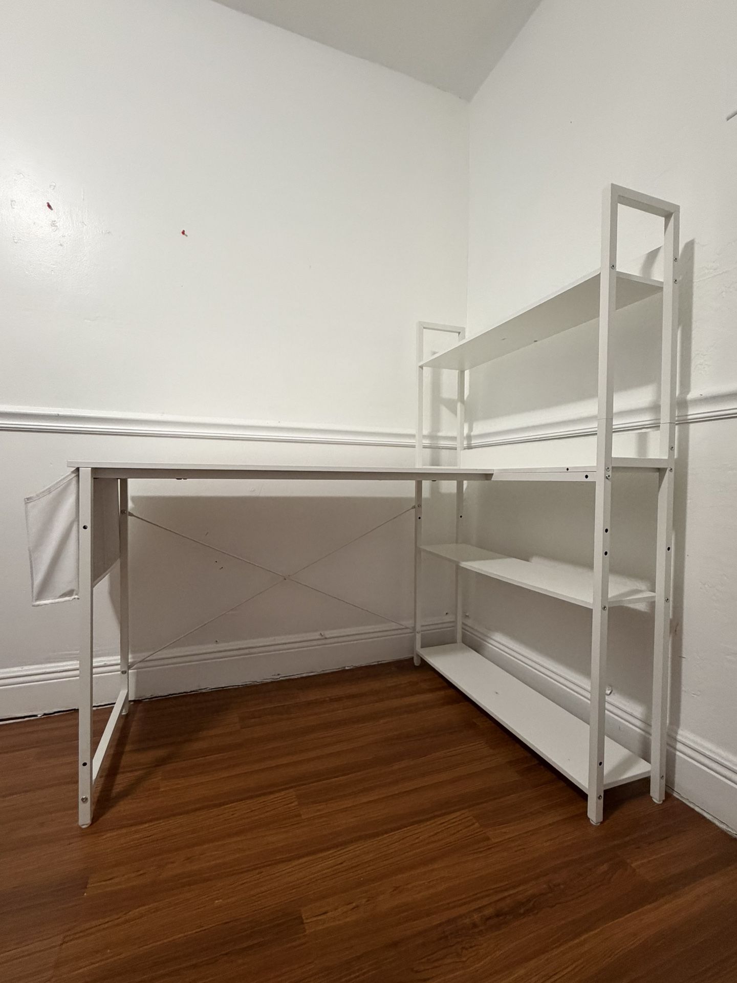 White desk in great condition, perfect for home office or study. There’s a small scratch on one corner, barely noticeable. Bought for $100, selling for $70.