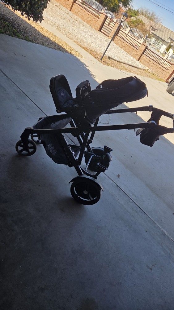 Comes with top seat and carseat attachment on the bottom fully functional has some scuffs but works great. You can buy the bottom seat and add. Folds up great but lock is broken unfortunately