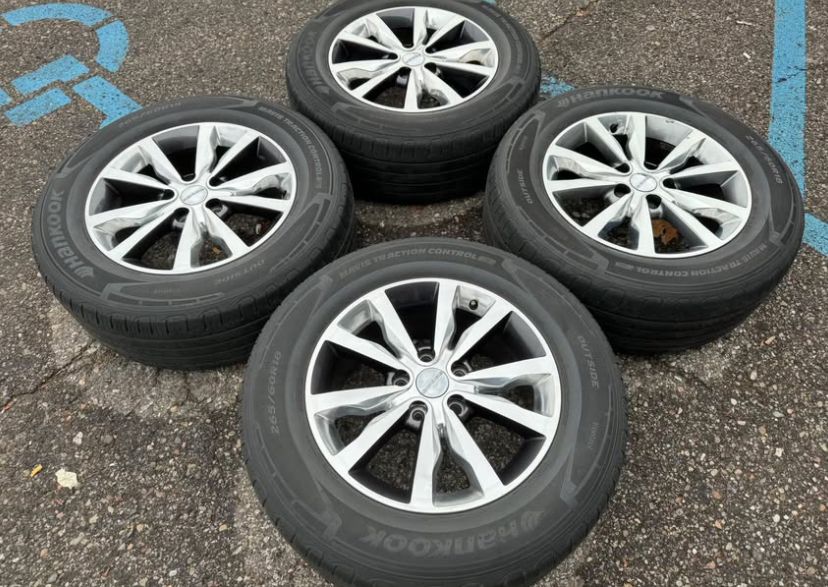 18” FACTORY JEEP DODGE WHEELS & TIRES! AMAZING PRICE WHEELS & TIRES ARE IN EXCELLENT CONDITION HANKOOK ALL SEASON TIRES TWO TONE FACTORY FINISH 5X5 5X127 5-LUG GRAND CHEROKEE COMMANDER WRANGLER DODGE DURANGO LIMITED RT CREW CITADEL LAREDO LIMITED UNLIMITED SPORT SAHARA WE FINANCE NO CREDIT NEEDED. APPLY NOW! STOP BY TODAY FINANCING AVAILABLE COMPLETE PACKAGE WITH SENSORS & CAPS FOR ONLY $799!