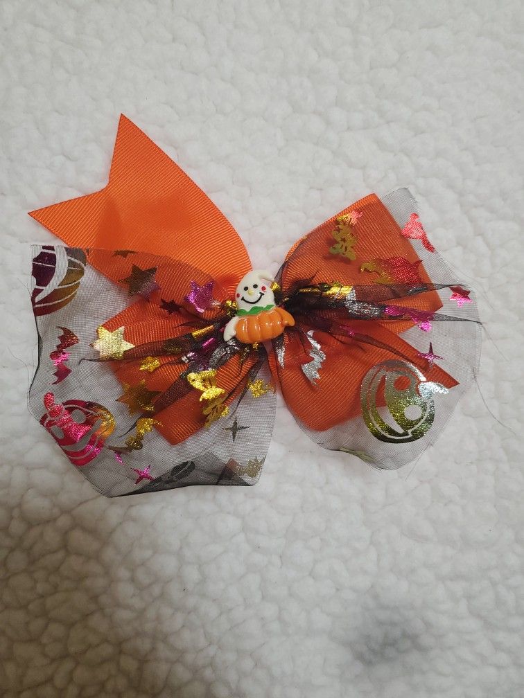 Girls Halloween bow. It is 6 inches long. Comes from a smoke free pet free home.