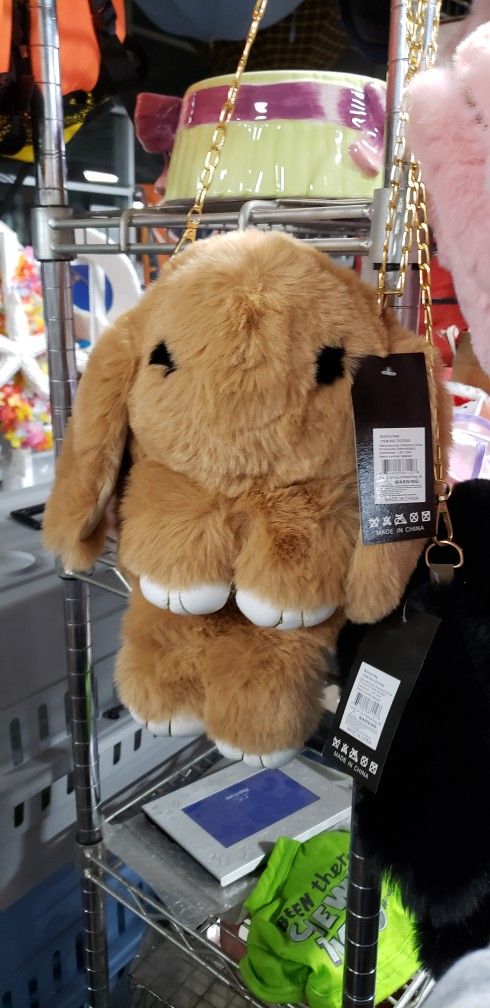 Asst Color plush bunny rabbit Purse Backpack Crossbody 3 In 1 With Chain