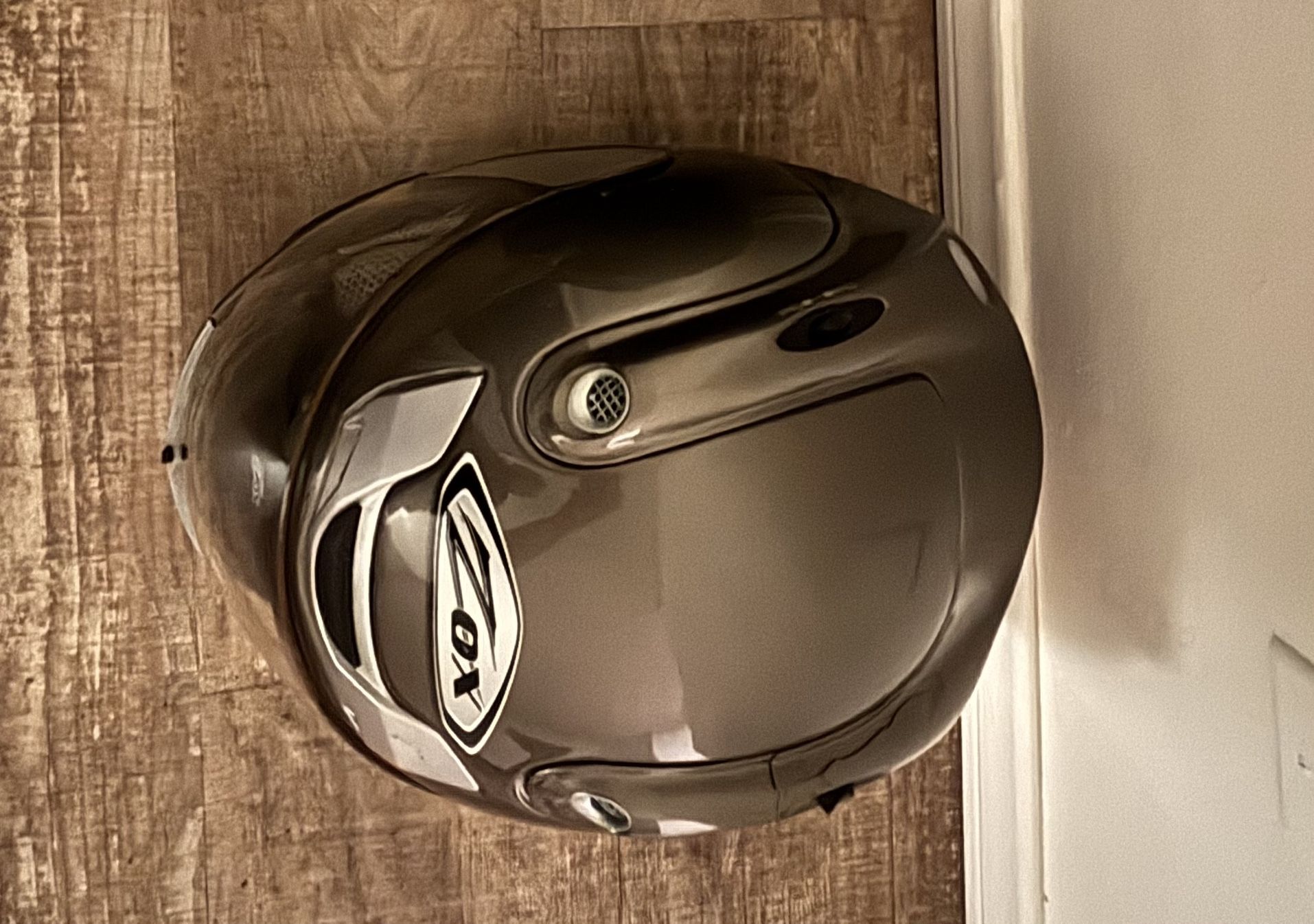Used. Good condition. Helmet has a small crack on top. (See picture) Gold - M
