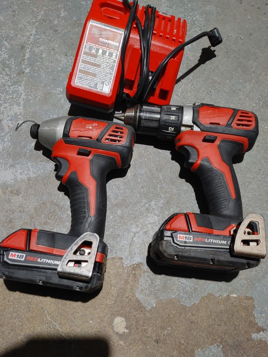 Milwaukee M18 Drill and 1/4" impact driver. 2 batteries and charger. Pickup only Central and Foster