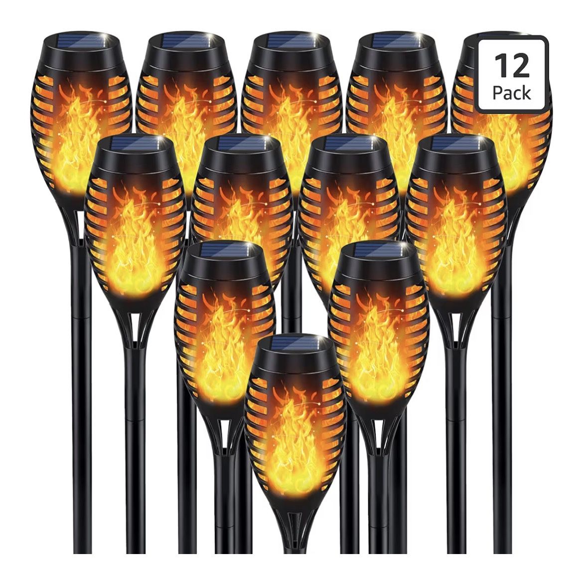 New in box Hablo español Solar Flame Torch Lights for Outdoor Decoration, 12Pack Outdoor Lights Solar Powered Waterproof, LED Torches for Outside Decor, Luces Solares Outdoor Decorations for Yard Patio Garden Art