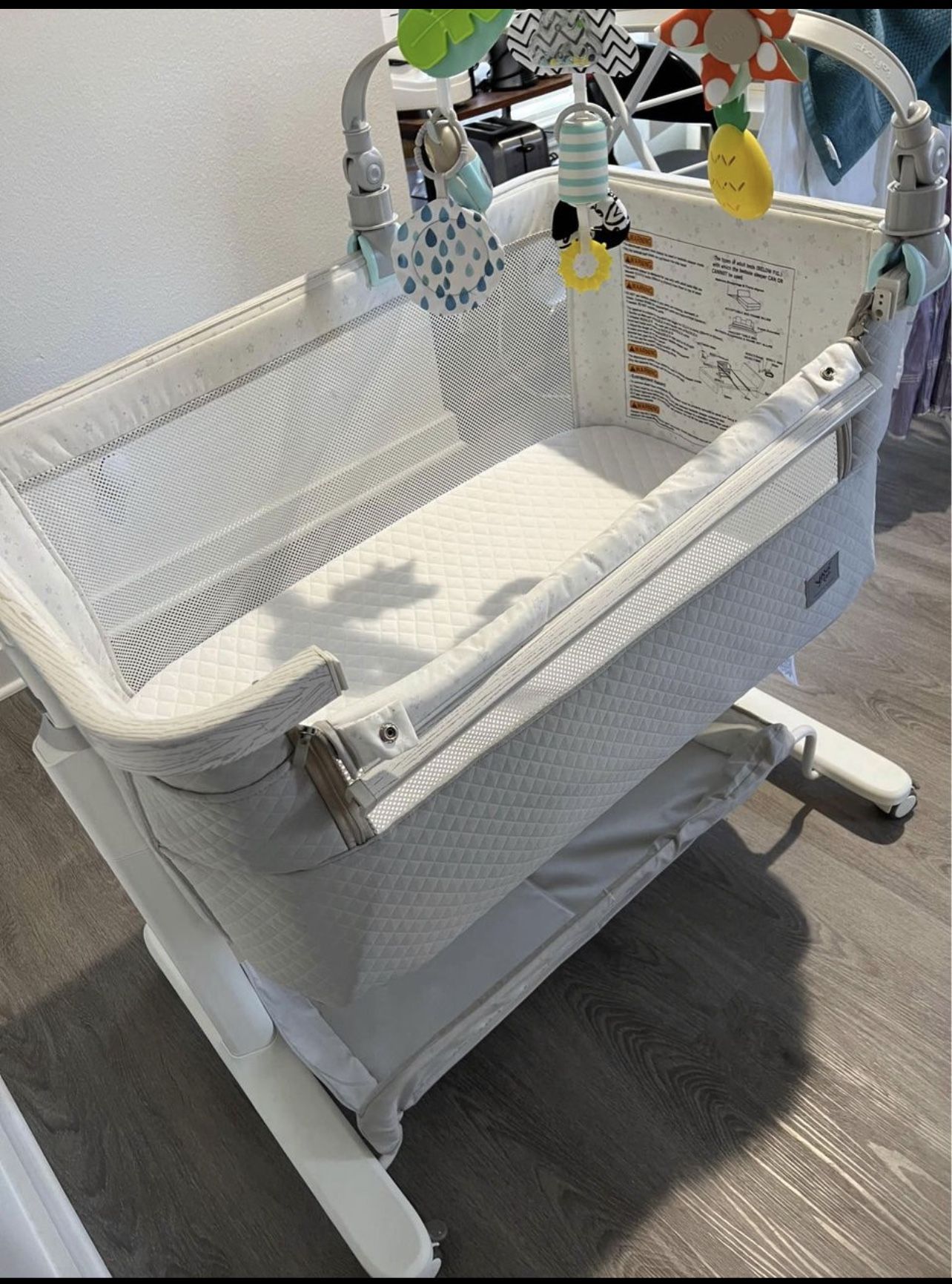 Baby bedside basinet available for sale. Used like new. Music and swing function available and working well.