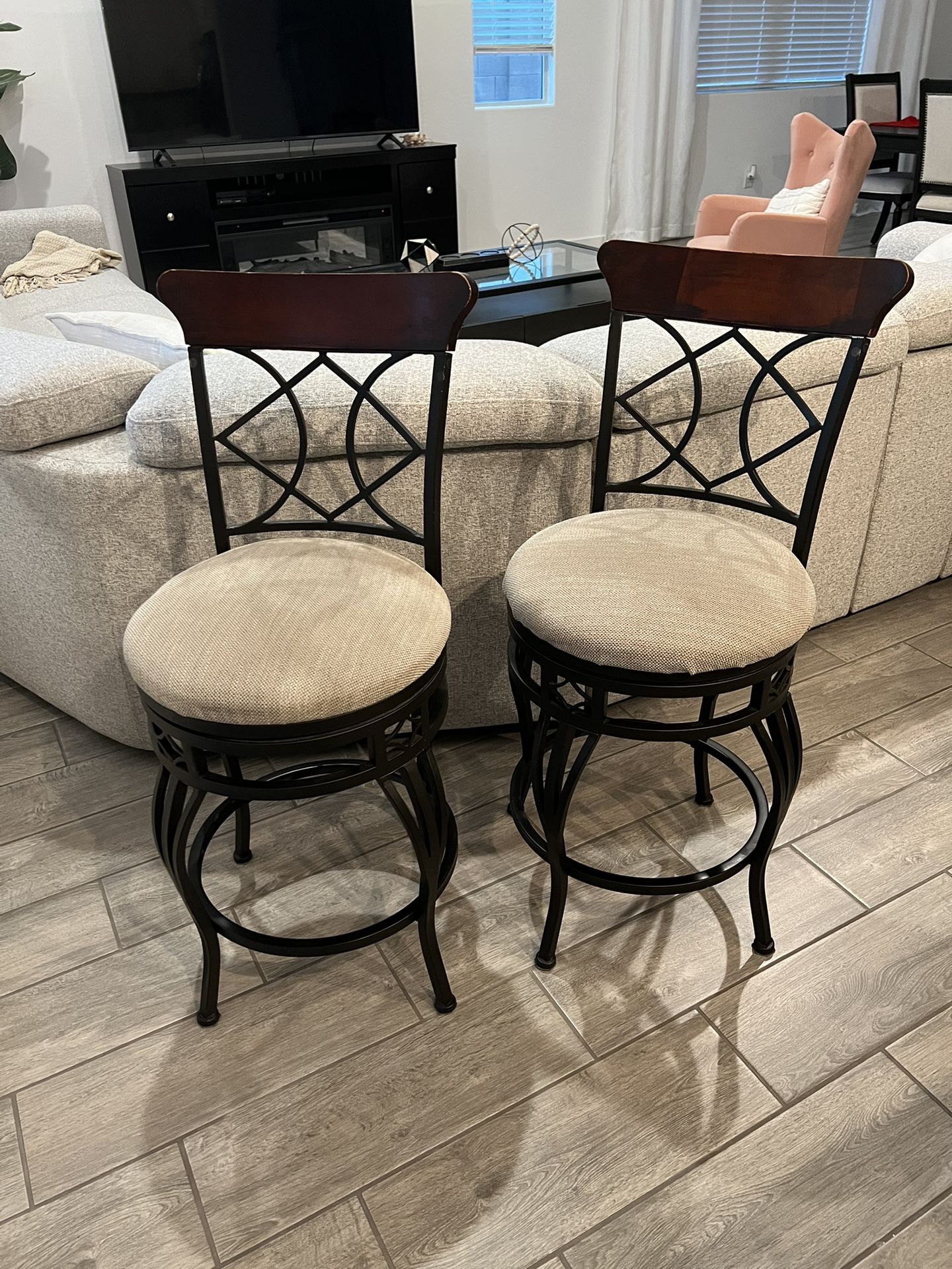 Two stools, light wear, always taken care of. Pricing is for two - just ordered 4 to match the kitchen and have no place for these.