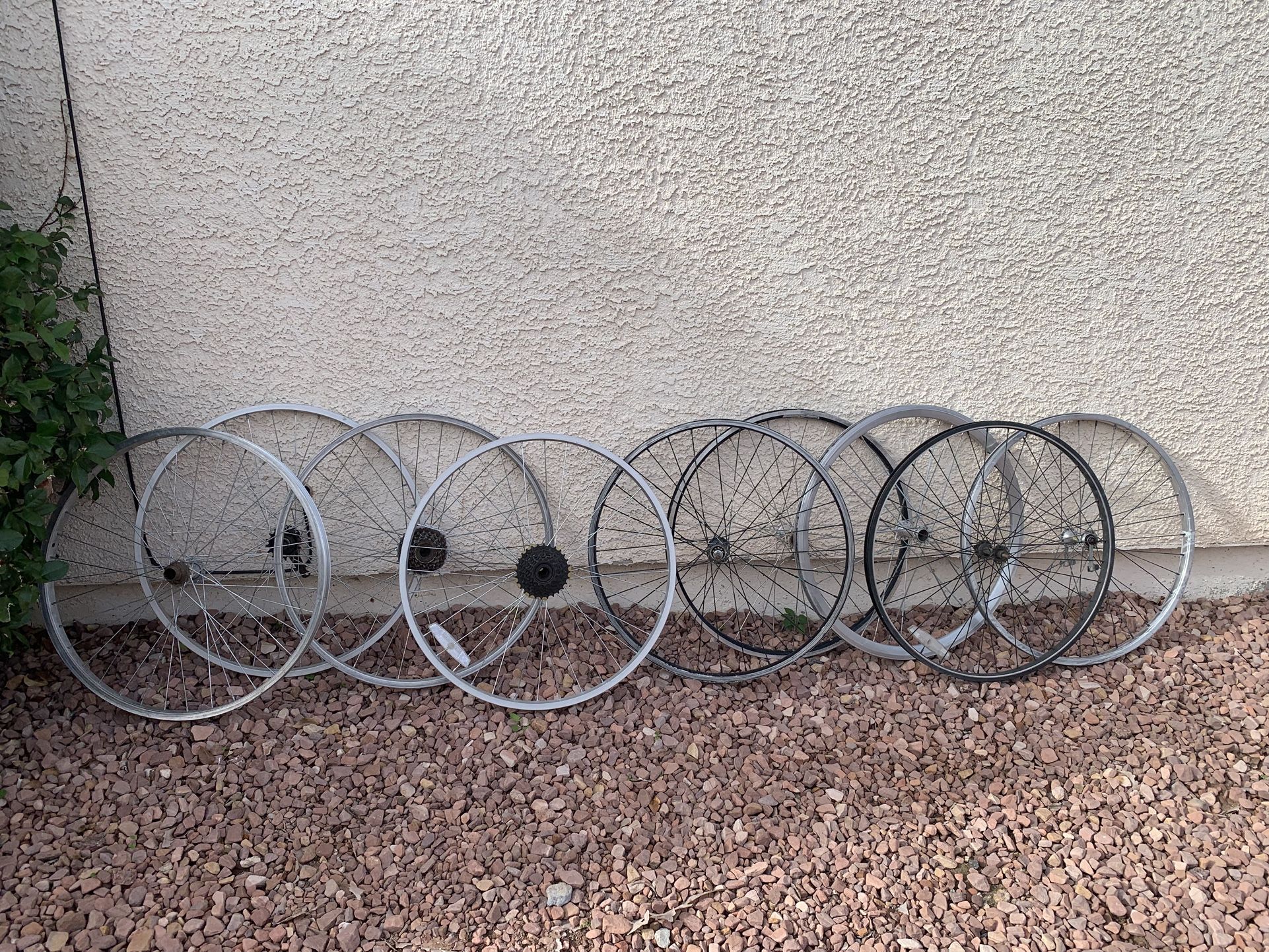 Bike rims 26” only few fronts left rest are few rears One single gear and 2 6 disc both need the middle axel ..rims $10 each, ..also have some 26” tires for $5 ..Silverado ranch area no delivery