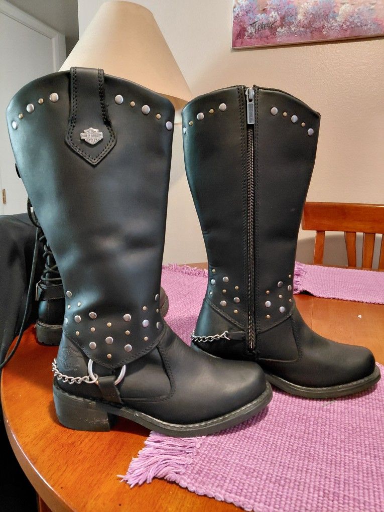 These boots are still like brand new were worn once for maybe an hour. These were a gift I bought for my daughter, but she said not really her style.