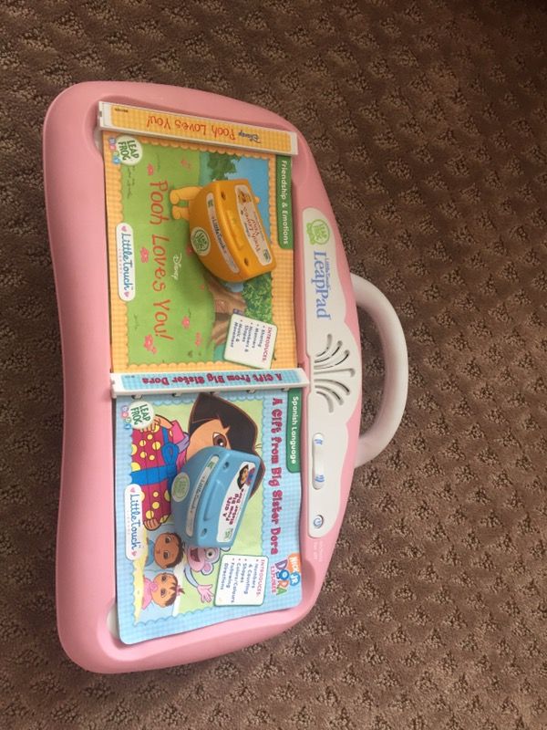 Leap pad comes with Winnie the Pooh and Dora books and cartridges. Saw the same one on eBay for 124.99. Only difference was one more book.