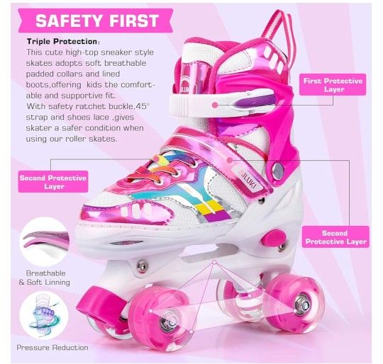 Brand: AILUKI Roller Skates for Girls, 4 Size Adjustable Kids Toddler Roller Skates with Light up Wheels for Toddlers Children Outdoor Indoor