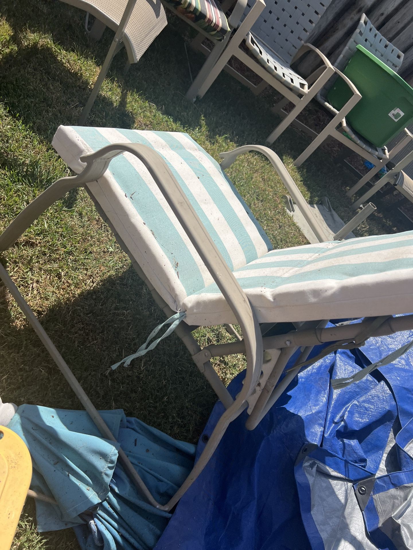 Spring cleaning and have 5 chairs pool lounge that recline. Pick up this weekend. Needs to be dusted cushions new and chairs solid n lightweight