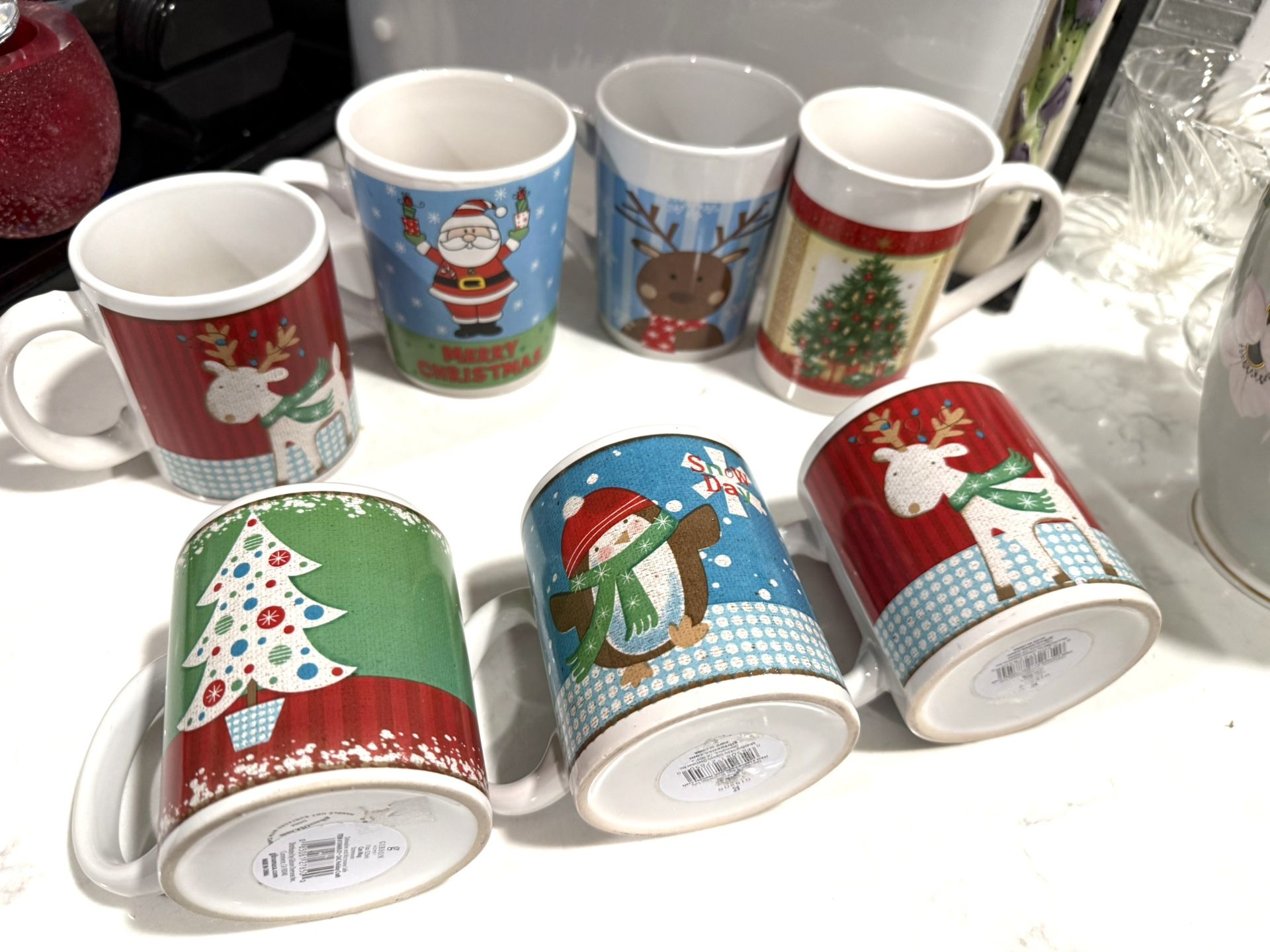 Lot of 7 Holiday Mugs - Reindeer, Santa, Christmas Tree, Penguin - Time for a Hot Cocoa Party !