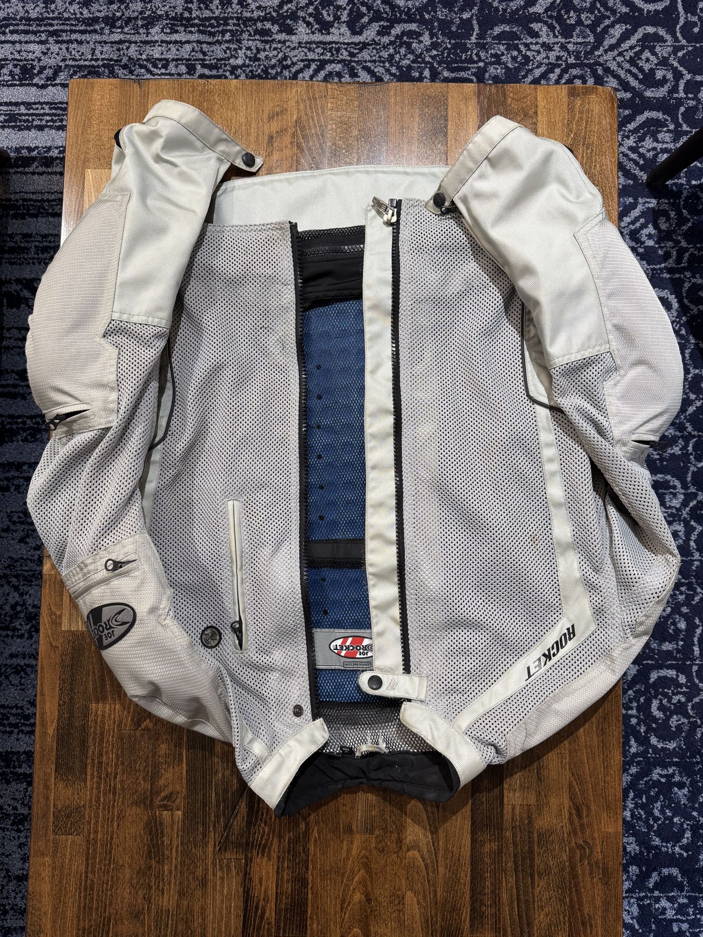 Size L Complete with armor and cold weather liner. Very comfortable jacket.