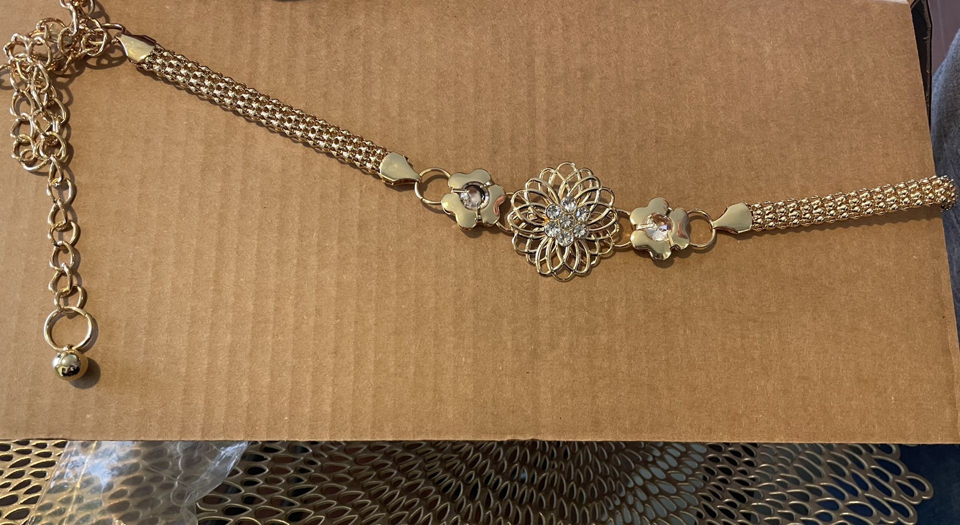 $5 Gold Flower Chain Belt ( New In Package ) Hablo Espanol / I Talk English