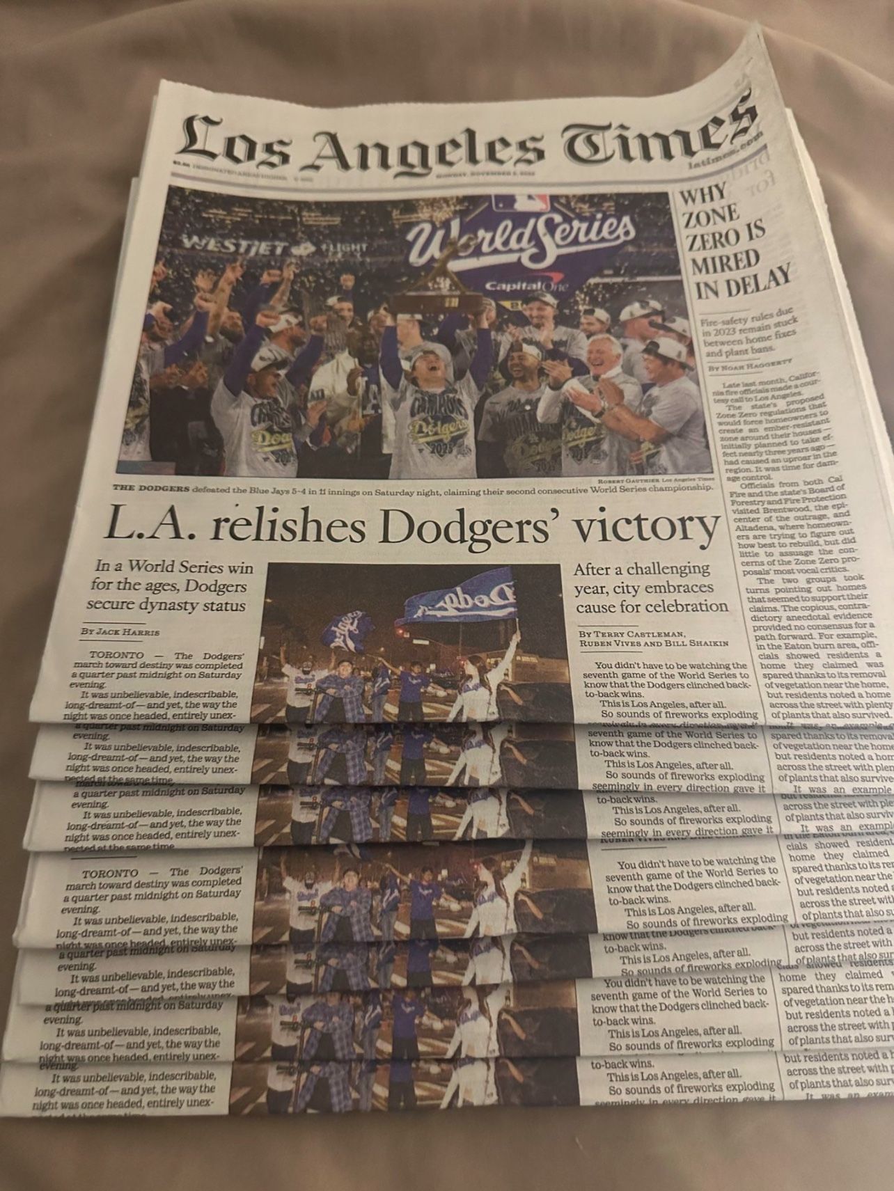 Dodgers LA Times World Series Edition Monday November 3rd $10 each pick up in Azusa