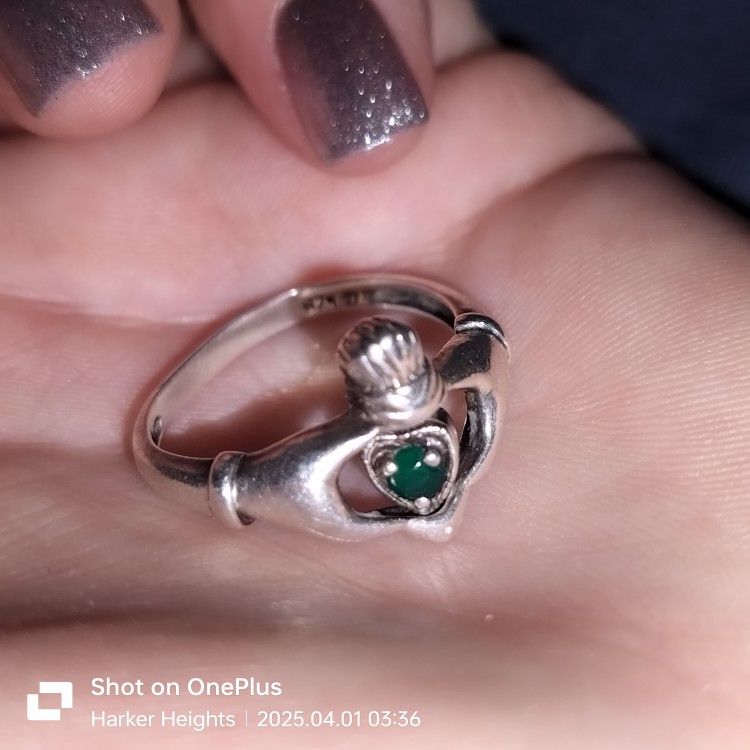 14k Sterling Silver Green Garnet Gimmel Spinning Ring Size 8