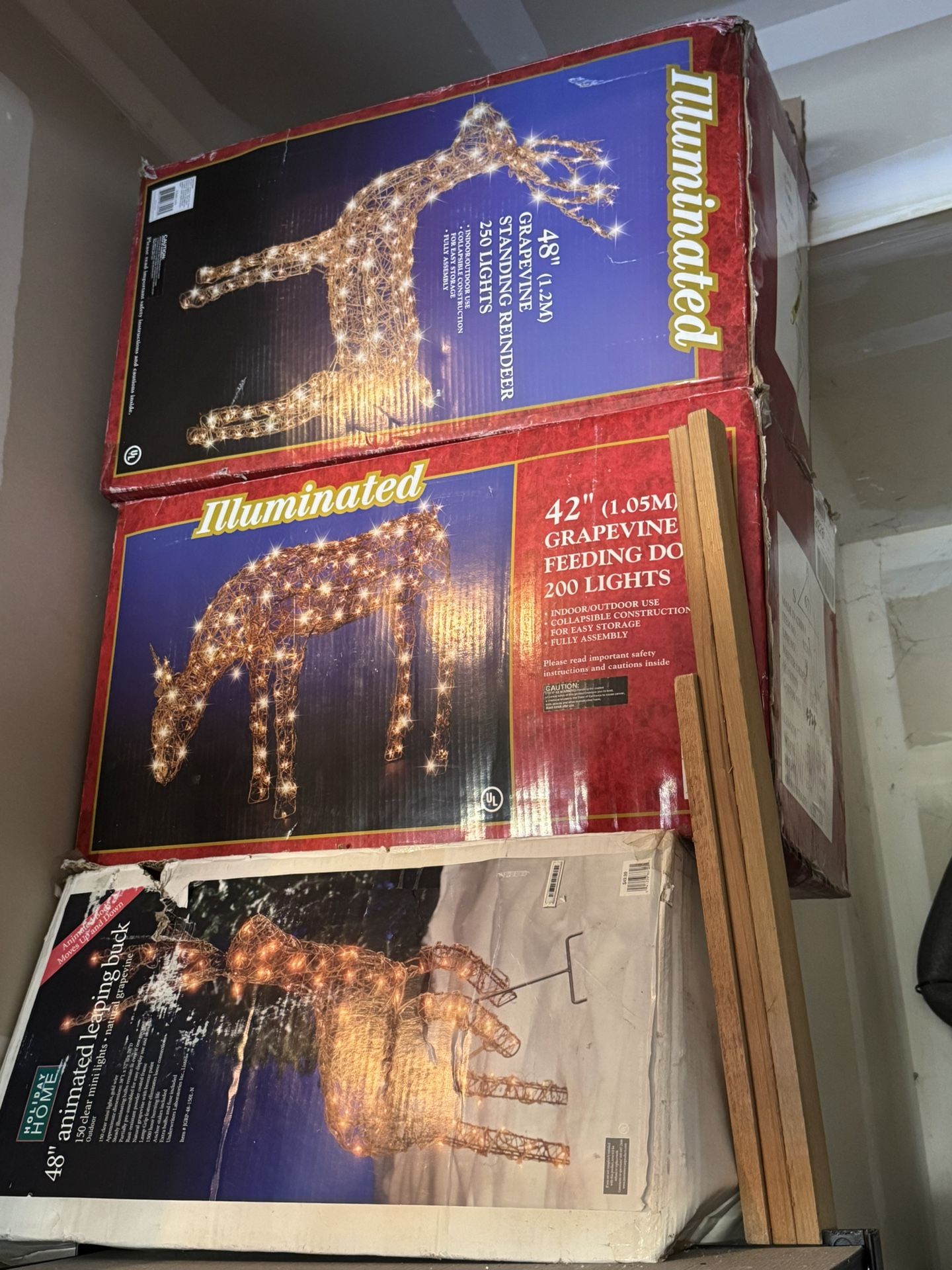 I know it's way off season... these are never used. They have been used in the past! Lights may need to be changed or some replaced. Set of 3, must take all. Need to move ASAP