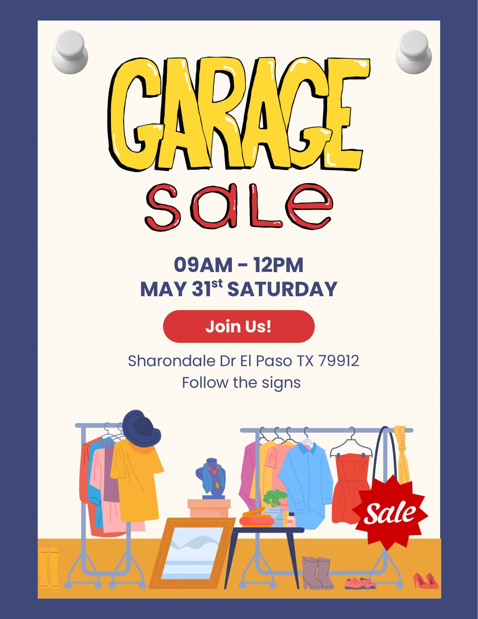 Sharondale Dr El Paso TX 79912 New/ used items. Clearing out closets, kids toys, garage space