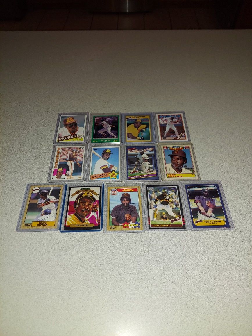 13 DIFFERENT HALL OF FAMER TONY GWYNN BASEBALL CARDS IN PLASTIC