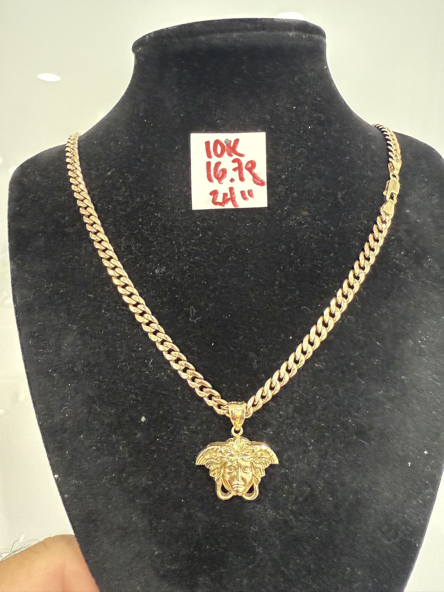 10K Yellow Gold Chain and Pendant For Wedding 16.7Gr 24 Inches Long