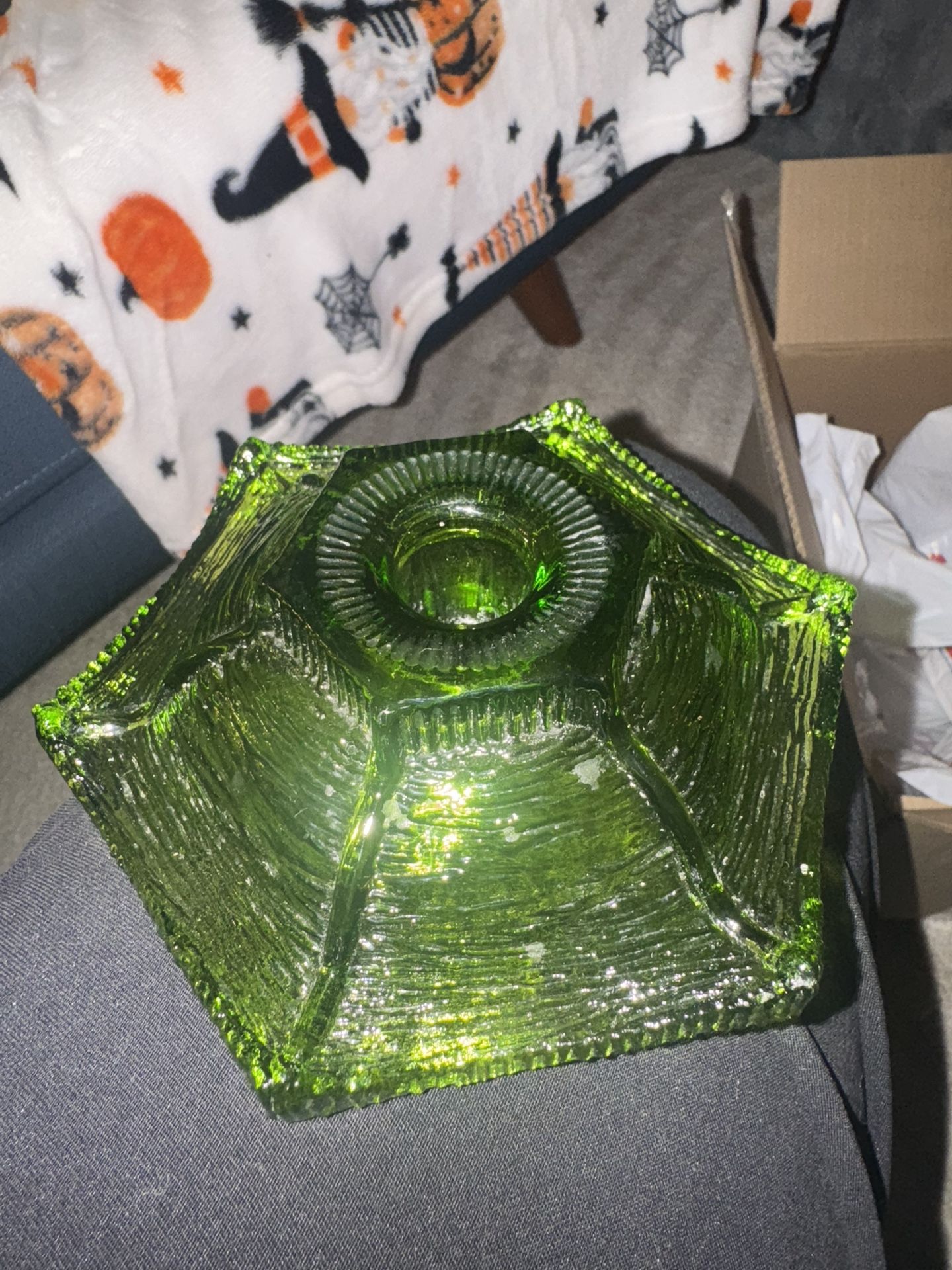 Excellent condition candle holders in green. These typically sell dor $20 each online but You can have both for $25. Hoping it goes to someone who appreicates this style.