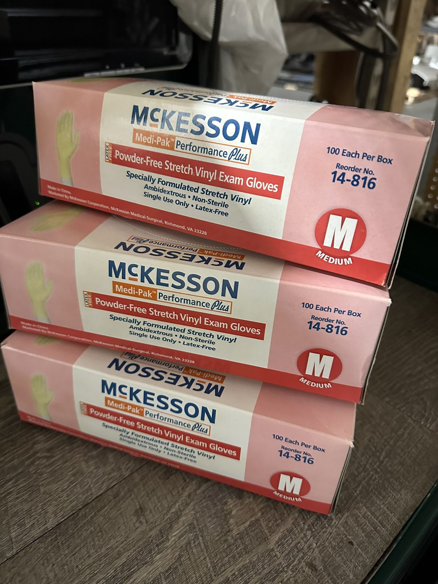 Vinyl exam gloves, size M multi pack discount, one box 100 pairs, one carton 10 box, /20%