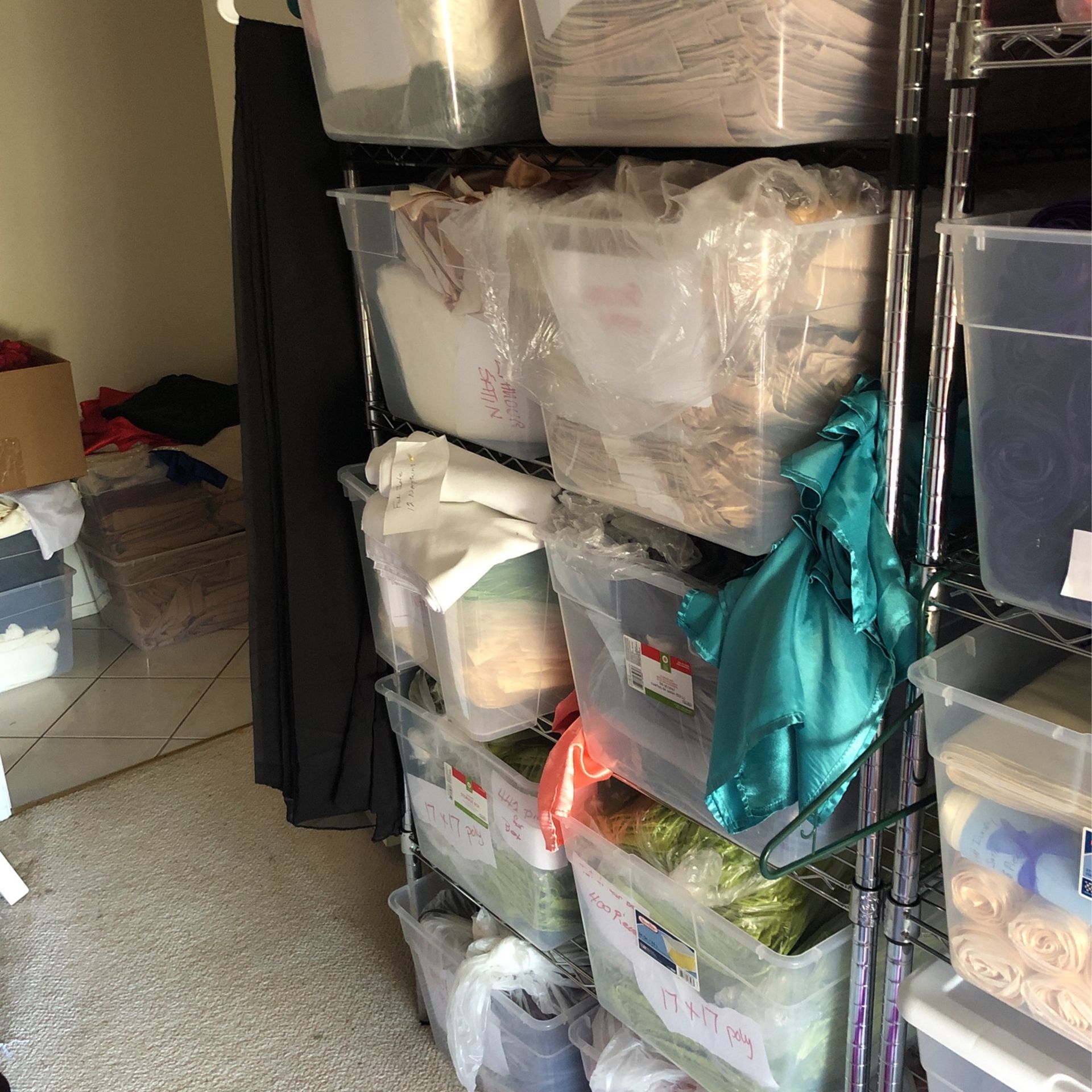 Napkins Linens Overlays Table runners Curtains Vases Votives To much to list please come go thur what I have for sale Everything is different prices
