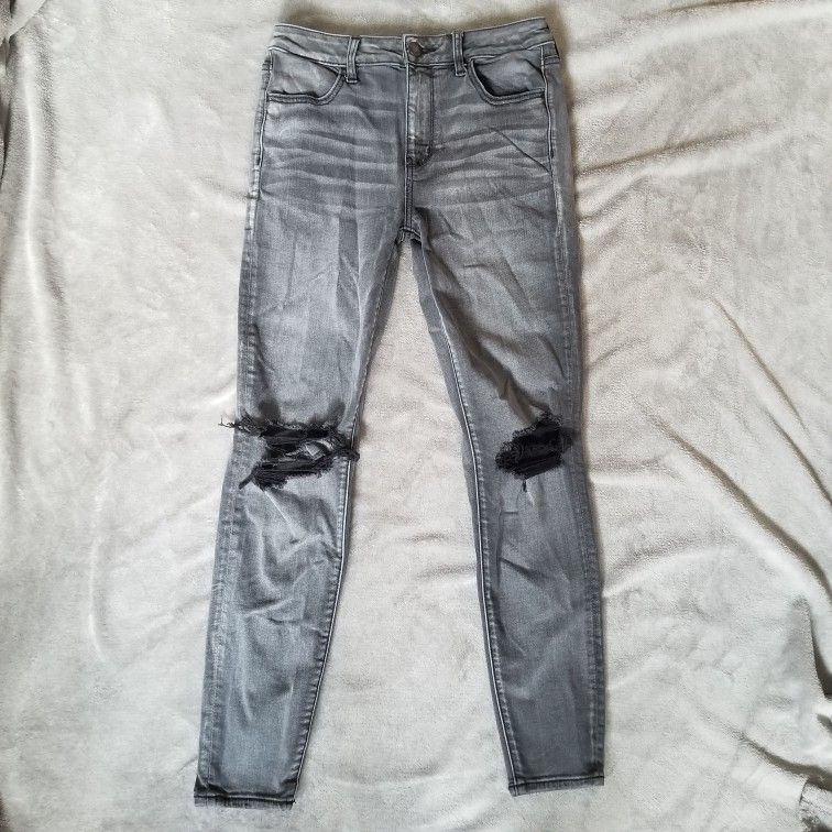 American Eagle Hi Rise Super Stretch 8R Jegging Gray Distressed Jeans