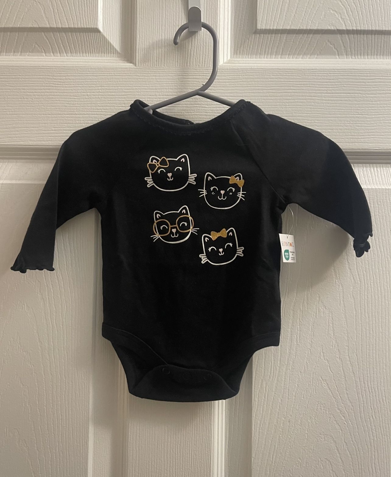 Brand New Baby Girl Black Cat Face Print Bodysuit Size 0-3 Months
