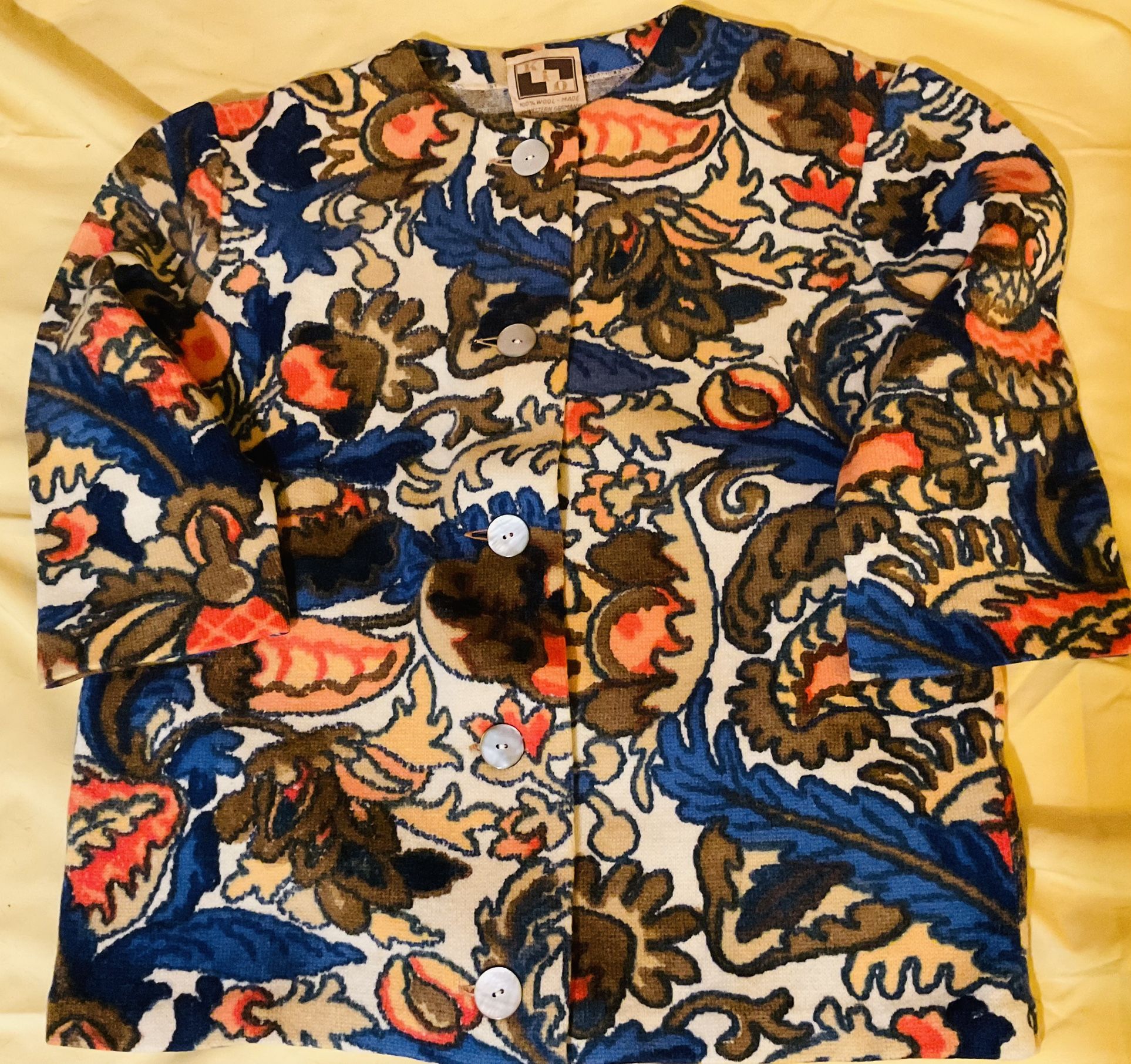 Up for offer is this beautiful and colorful wool sweater made in Germany. Sweater is in awesome condition for it age. It went right back into the bag after taking photos. The Vintage KIO Colorful 1950’s Button Up Wool Sweater Cardigan with a colorful print is a unique and retro piece of women's clothing. Made from 100% wool in Germany, this original rockabilly-style sweater embodies the fashion trends of the 1950s. The multi-color design adds a pop of color to the casual and relaxed silhouette, making it a standout piece for any vintage enthusiast looking to add a touch of retro flair to their wardrobe. The sweater is marked with a 12 which might be the size. But I’m not sure. Please feel free to ask me any questions.
