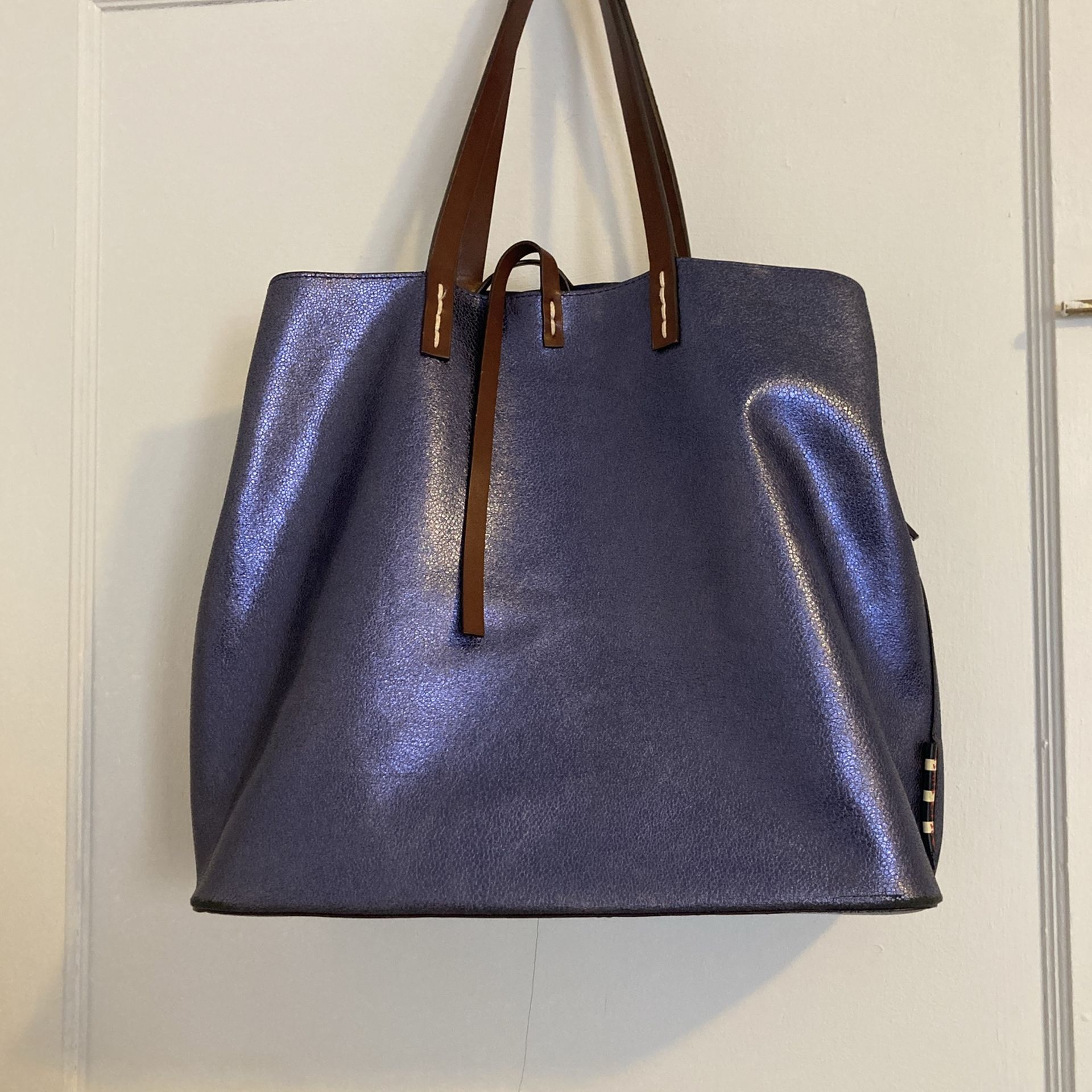 Metallic indigo leather bag from Italy. Barely used.