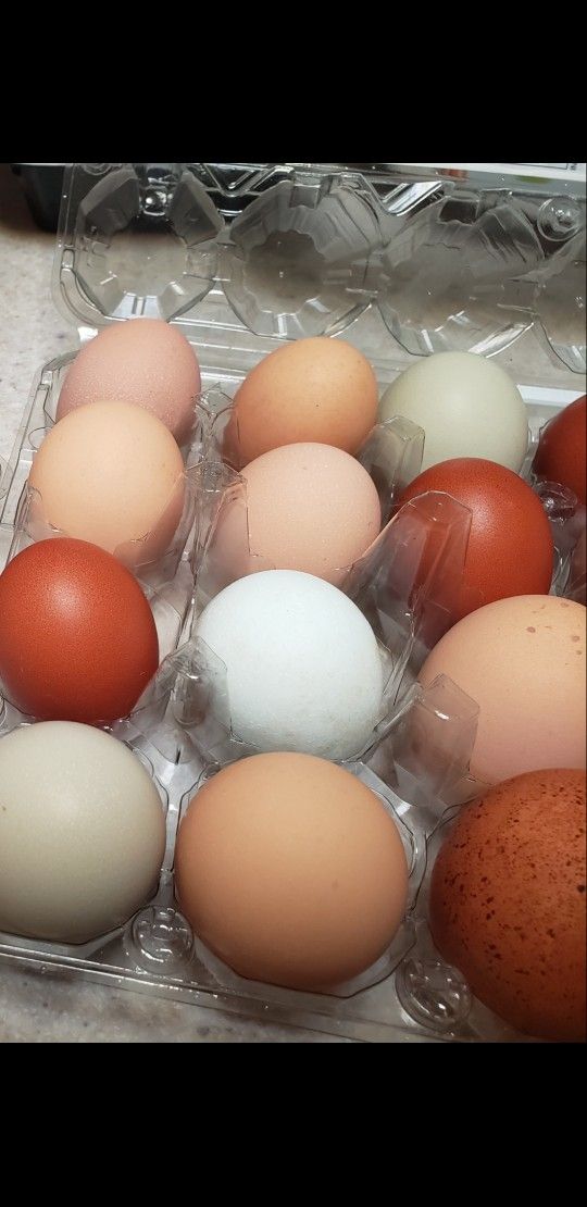 Farm fresh eggs from my spoiled healthy girls. also available...fertile eggs from 100% pure French copper morans & 100% pure salmon favorelles these are not mixes. fertile eggs are 3.00 per egg.or 30.00dz ninefiveone/2eight5/onefive8five