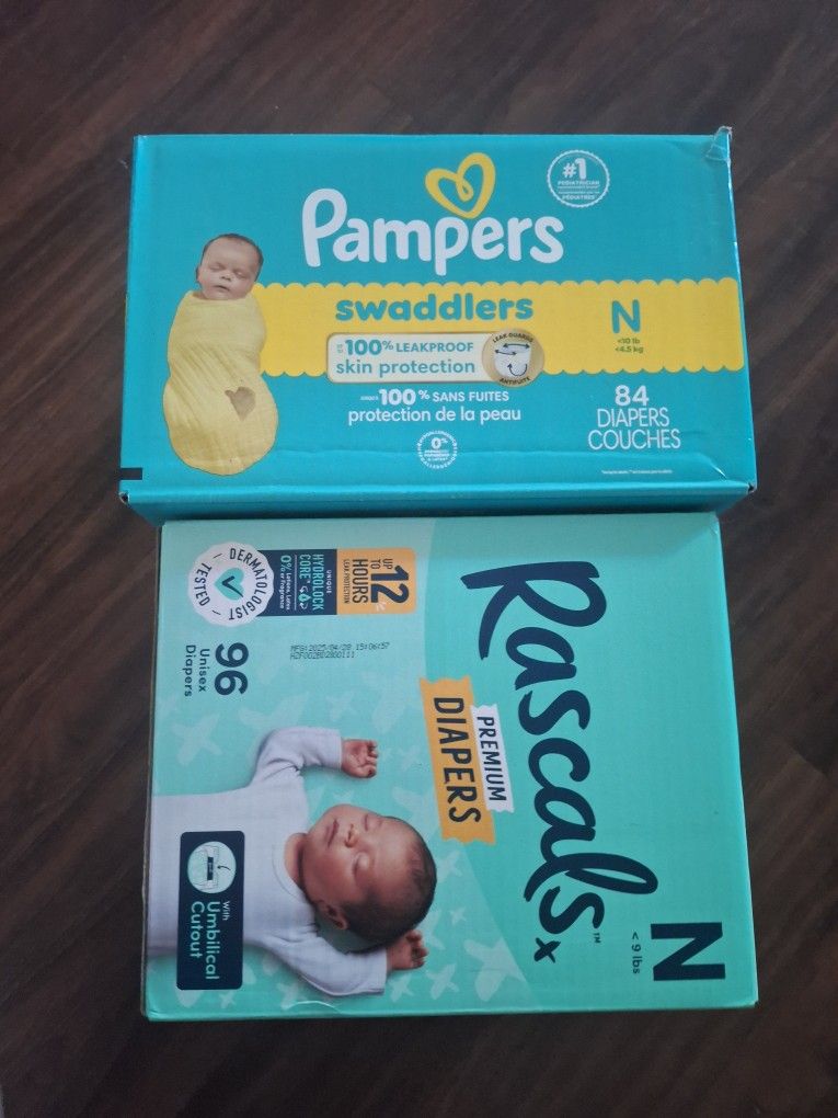 Diapers Newborn size. They have been open to put in drawer but my girl outgrew the diapers quicker then I thought. I'll be selling them as a pair for $10, pick up only. Must take both.