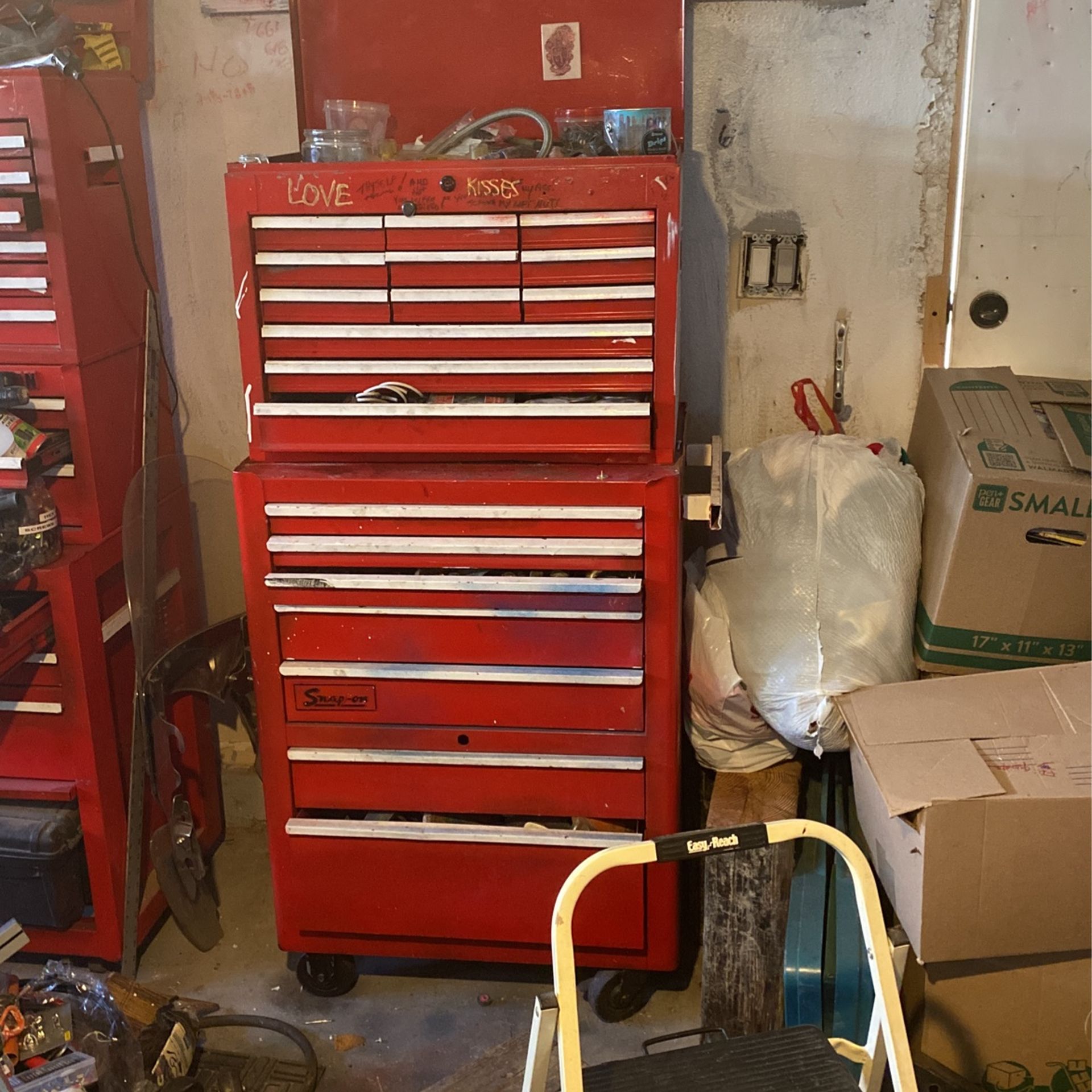 This Snap on tool chest comes full with all kinds of tools nuts, bolts , sockets, ratchets and many more things