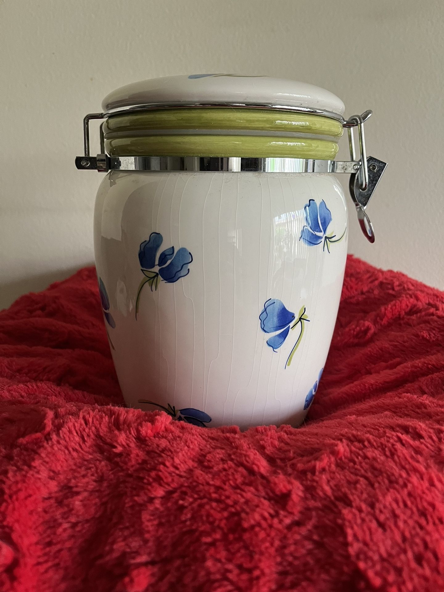 New Canister Flowers Blue Green Latch lid Ceramic Spring Summer Home decor