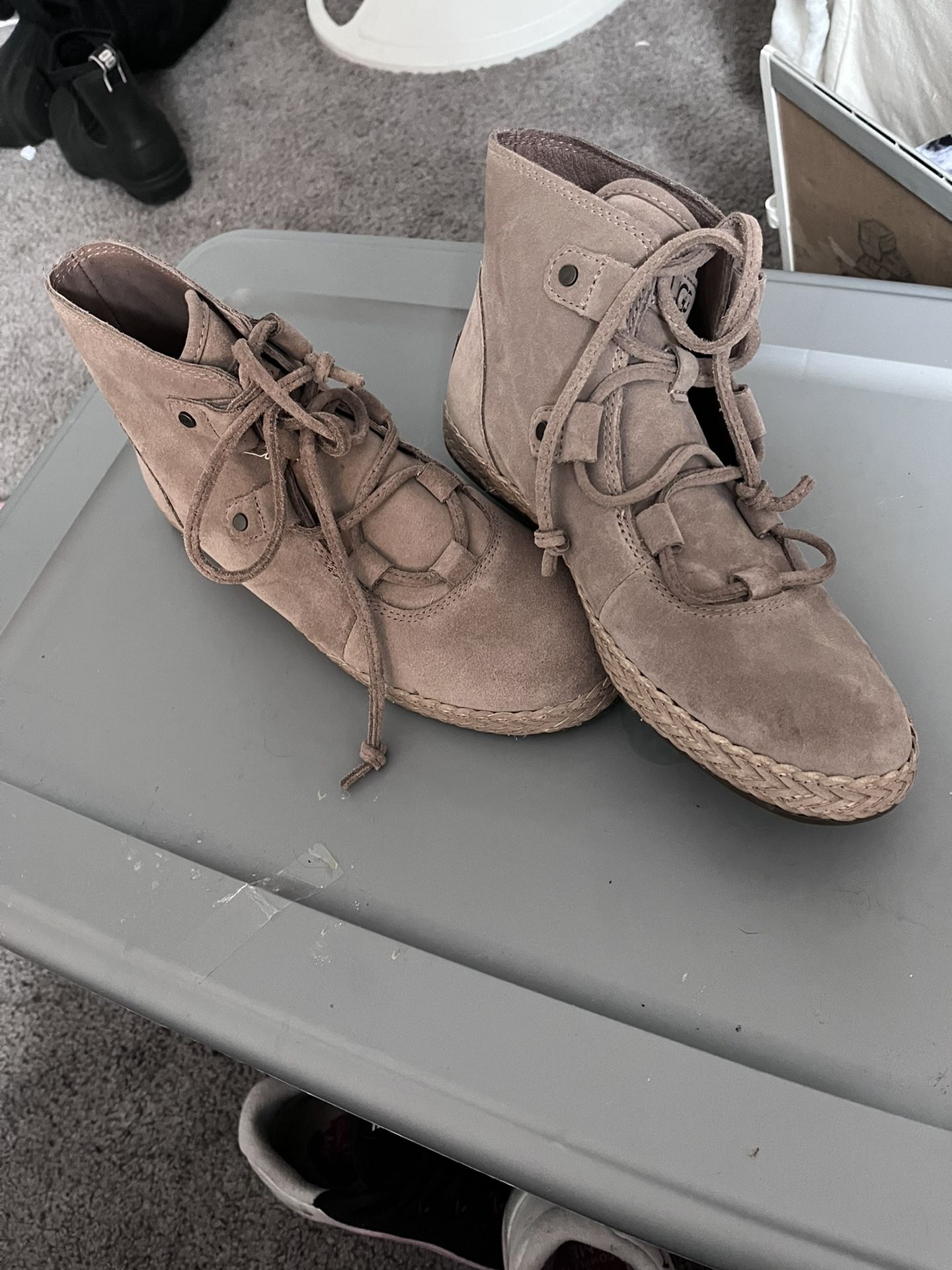 Sued very comfortable they are so cute I bought them a size too big so unfortunately size does matter.