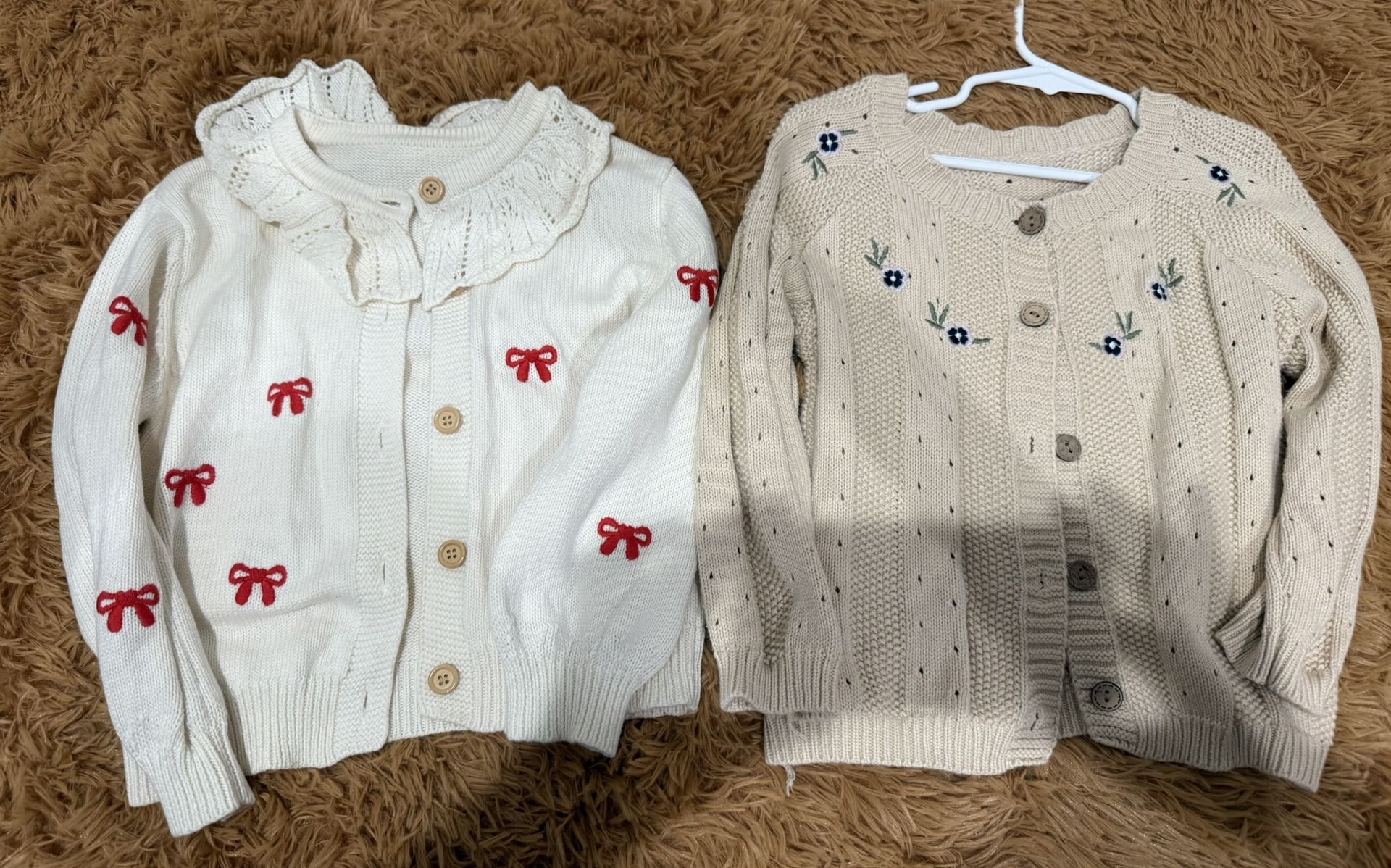 Girls sweaters like cardigan style! Used but great conditions! Asking price for both $10! Size 5 toddler