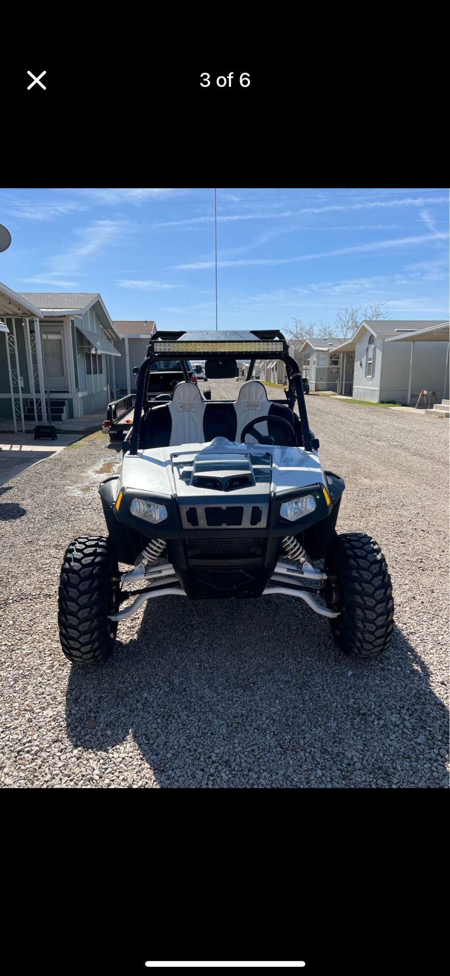 Rzr 800 with Super ATV front/rear suspension. Equal to Rzr S model. Method wheels, new tires, upgraded clutch and brakes, new battery, steel doors, roof, front light bar, rear amber chase light, 157 hours, New Prp seats
