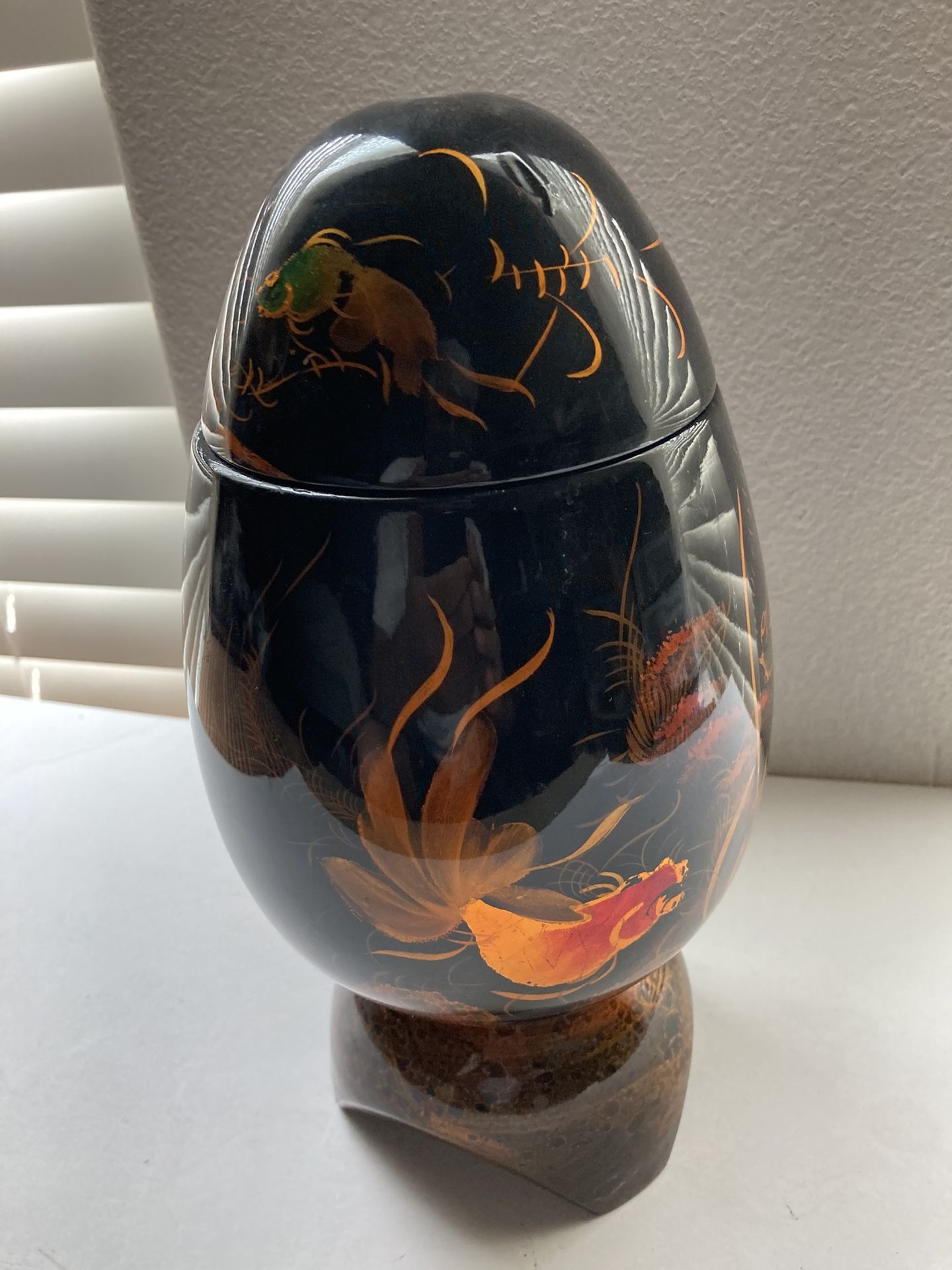 Mid Century Vietnamese Lacquerware Black Egg. Asian décor- 11”