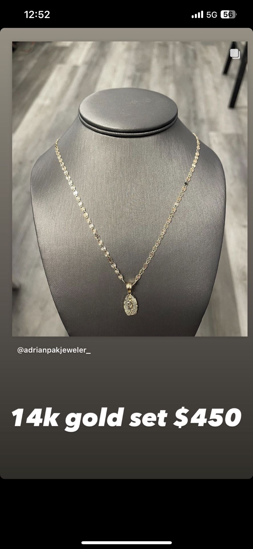 Solid 3 tone 14k gold Valentino chain 20 inch 14k gold Virgin Mary.