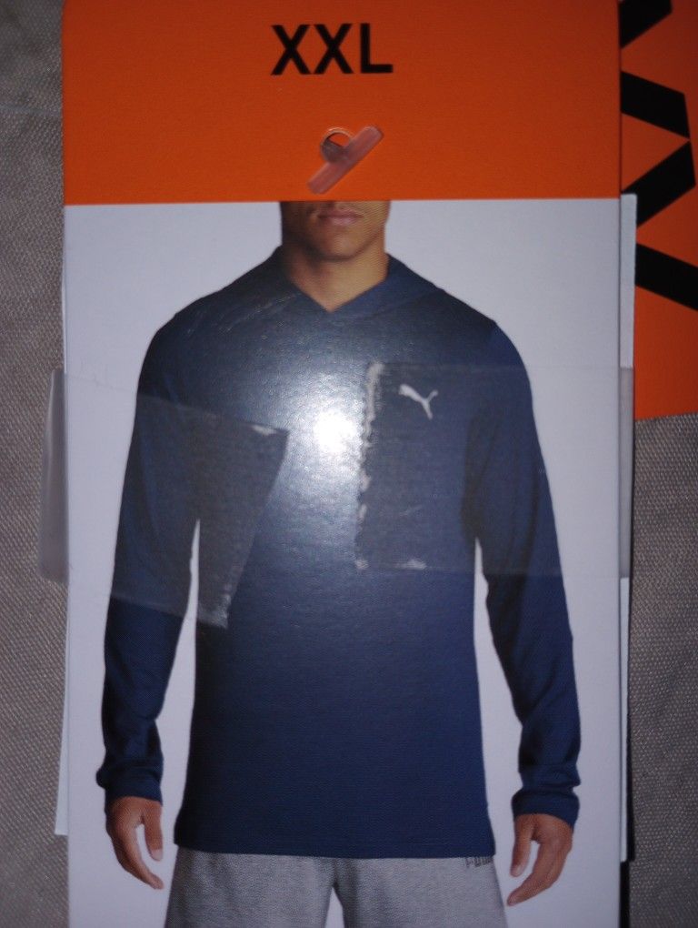 PUMA® Puma logo on left chest Two panel hood with cross over neck Split lower side seams Made in Cambodia Content: 95% Polyester | 5% Elastane Approximate 150 GSM (4.42oz) fabric weight Lightweight Sizing: Size: XXL Back Body Length (in): XXL = 31