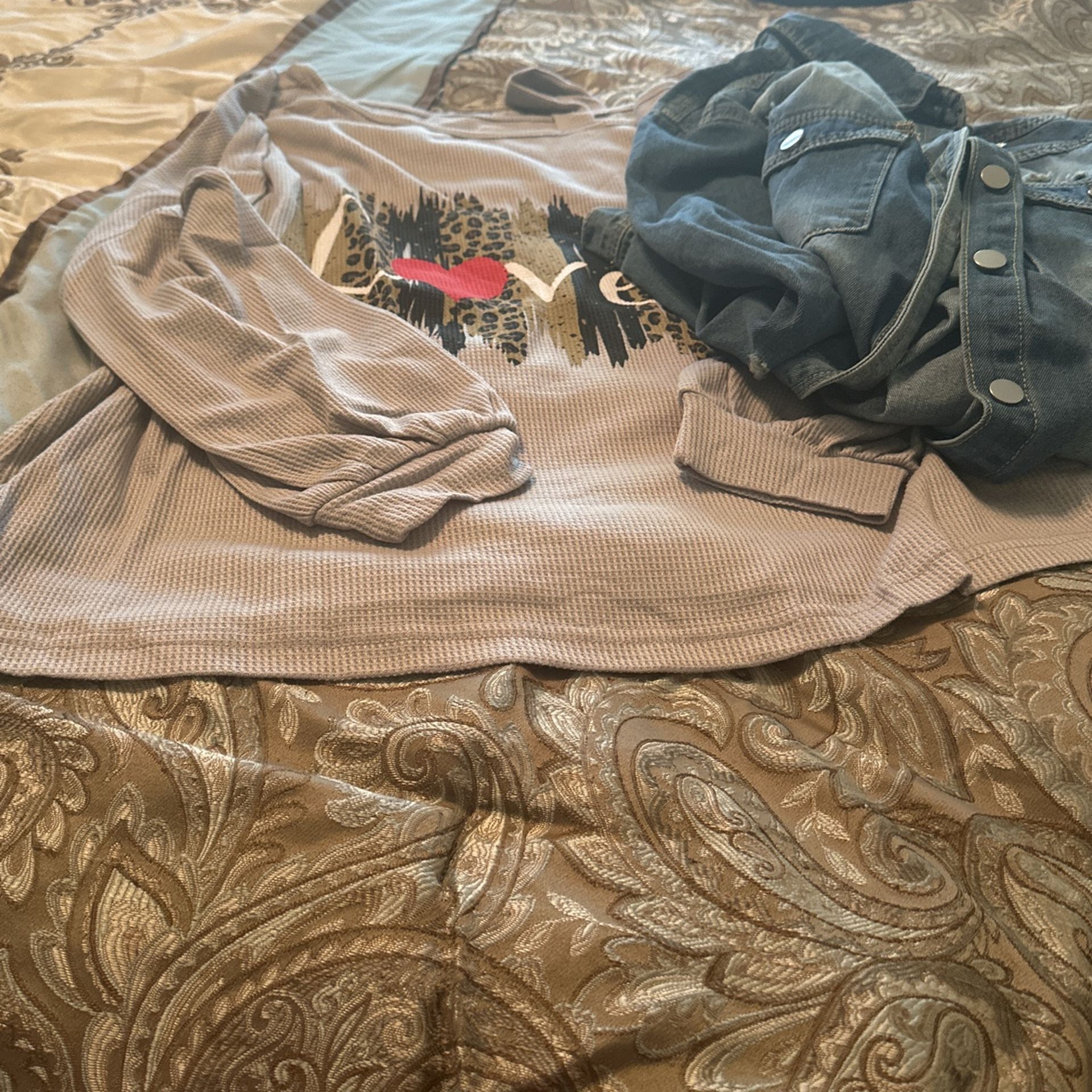 Cute long sleeve love shirt. size 2x with super cute denim jacket. brand new never worn. 38$ for both. jacket 24$ by itself.