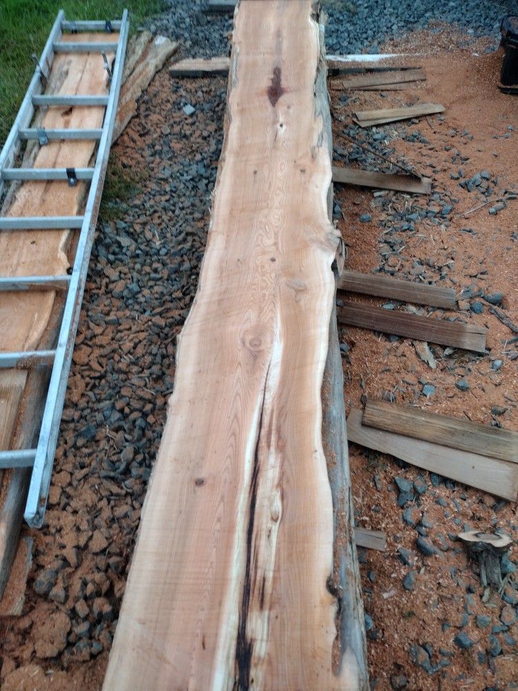 Beautiful yew slabs, just under 2" thick, ~15" wide, 10' long, just cut so they're unsanded, unfinished, sitting at 12% moisture right now. You can see from the end cut of how vibrant this wood will be when finished. It's so gorgeous that it's hard to give up, that's why I'm only selling a couple of slabs.