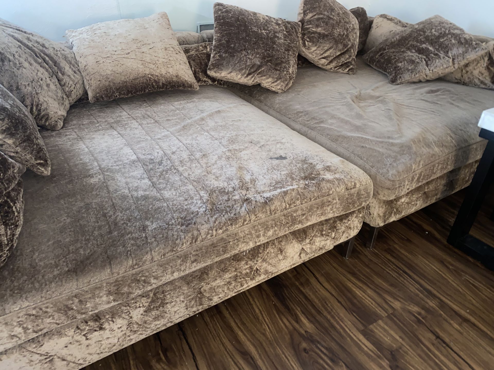 Two piece oversized sectional sofa in fair condition. Sofa is very comfortable and versatile.