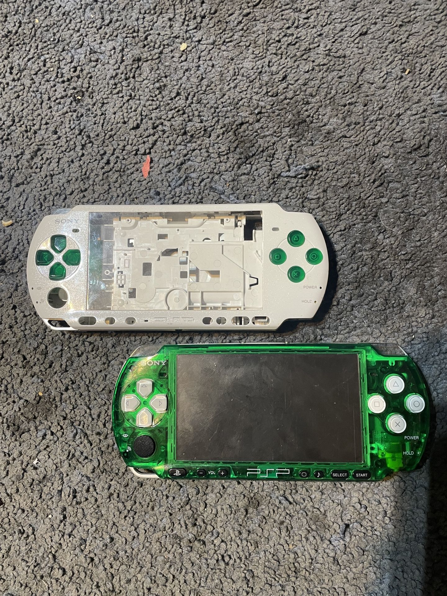 Fresh new shell installed high gloss not one scratch still has screen protector, motherboard has been done with conformal coating so it will glow under UV light .. comes with a 64gb card full of games and emulators, and ISO files “ full game copy” UMD drive works flawlessly. new battery and comes with the original Sony white pearl shell and buttons , soft mod custom firmware 6.61 pro C , No charger sorry . screen looks clouded because thats the screen protector on ready to be pulled off.. make an offer ... preloaded with a lot of games no joke lol and not repeats or fake bad imitation copy games .. everything works like factory All the buttons are smooth 👍 can include a charge cable for usb . 100$ firm with this cfw u can rip any UMD disk for any region, and it will save the image on the Psp, so it can be played at any time , the psp is only limited at 2T sd card so that can be maybe 300 games maybe 4x the library of games sony made for the psp , but u can use that memory space for music and video also .. its no limits