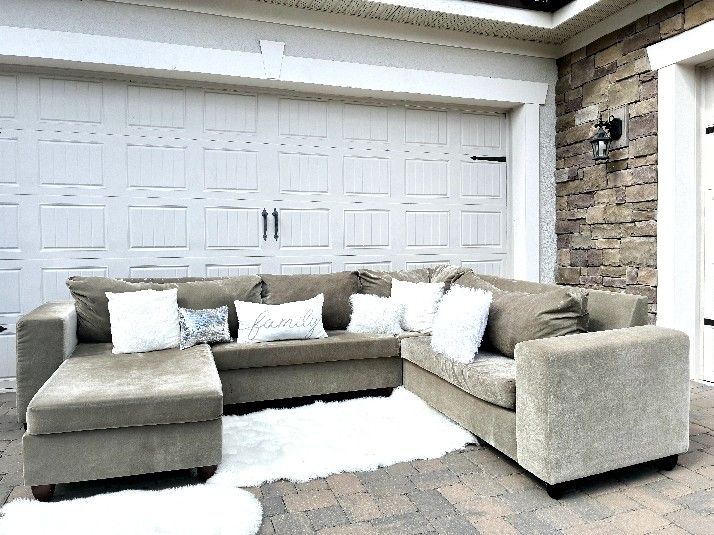 Full payment after you receive the Beige 4 piece Sectional!!! 6 ft x 13 ft x 8 ft Price is FIRM.... Delivery is available